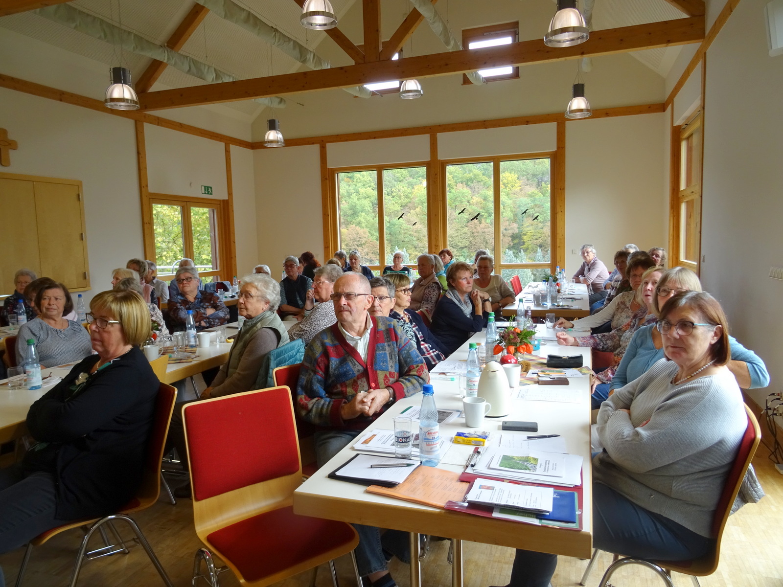 Im Konferenzteil informierte Daniela Jakob vom Landratsamt über Über die neuen Sprechstunden des Bezirkes im Landratsamt zum Thema Hilfe für die Pflege. Das Landespflegegeld muss nicht jedes Jahr neu beantragt werden, wenn es einmal genehmigt wurde. Am 16.11.19 findet der zweite Info-Tag für Senioren in der Räuschberghalle in Hörstein statt. Christoph Rietzler von den Maltesern in Aschaffenburg stellte die Angebote für Senioren des MHD vor, so z.B. den Hausnotruf, Fahrdienste, die Hospizarbeit und das Essen auf Rädern. Besonderen Wert legte er auf die Vorstellung der Therapiehunde. Diese haben eine intensive Ausbildung hinter sich und sind geschult, mit ehrenamtlichen Begleitungen alte Menschen in Heimen oder auch in Gruppen oder zu Hause zu besuchen. „Diese Besuche haben schon bei so manchen alten Menschen kleine Wunder vollbracht“, so der Bezirksgeschäftsführer. Dekanatsvorsitzende Ursula Hohaus gab den Ehrenamtlichen einen Überblick über die geplanten Veranstaltungen im Jahr 2020. Diese sind unter www.alzenau.seniorenforum.neteinzusehen. Dekanatsaltenseelsorger Pfr. Christian Grebner nannte den Herbst als eine Zeit der „Reife und Ernte“ und bezeichnete das Alter als den „Herbst des Lebens“. Engagierte Diskussionen gab es beim Thema „Pastoral der Zukunft“. Monika Wunschik, die Vertreterin im Dekanatsrat, forderte dazu auf, die Stimme für die alten Menschen zu erheben und sich selbst als Kirche vor Ort zu verstehen. Regionalreferent Volkmar Franz brachte den Ehrenamtlichen den neuen Rundbrief, das Bildungsprogramm und den Freizeitprospekt für 2020 mit. Alle Publikationen sind in der Regionalstelle in Aschaffenburg erhältlich, Tel: 06021/392160, seniorenforum-ab@bistum-wuerzburg.de