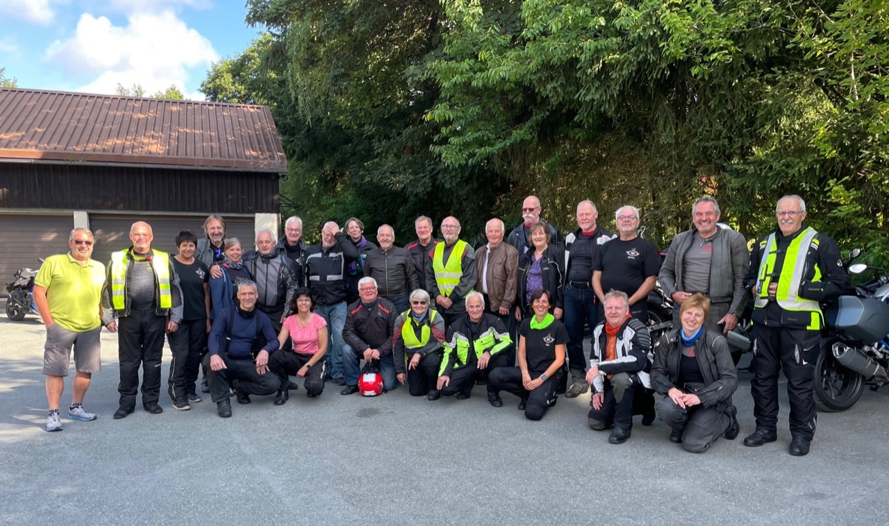 Für dieses Jahr sollte es mal eine Drei-Tages-Tour in das Fichtelgebirge werden. Eine große Herausforderung, denn 20 Motorräder und 27 Biker und Bikerinnen hatten sich im Dezember schon spontan angemeldet. Quartier für zwei Übernachtungen fanden wir in Warmensteinach. Am Sonntag starteten die hochmotivierten Motorradfreunde von Schöllkrippen aus. Über Lohr, Karlstadt, Arnstein, Werneck fuhren wir in Dreiergruppen nach Zeil am Main zur Zeiler Kapelle.