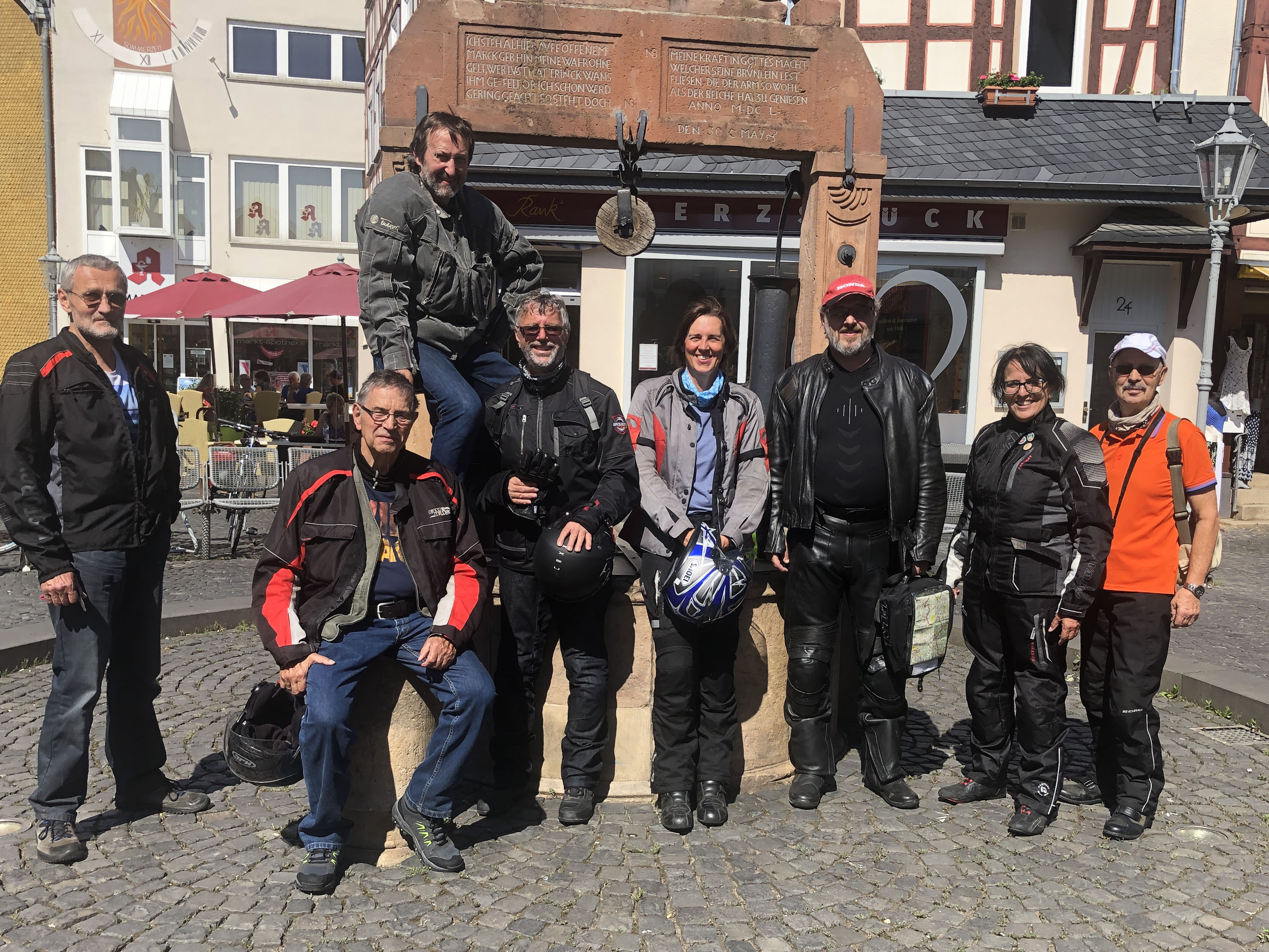 Inmitten der imposanten Altstadt, dem historischen Marktplatz mit dem Marktbrunnen aus dem 17. Jahrhundert, konnte die Sp(i)rit-Biker-Gruppe die letzte Kaffeepause genießen. Auch ein letztes Erinnerungsfoto am Marktbrunnen war obligatorisch.